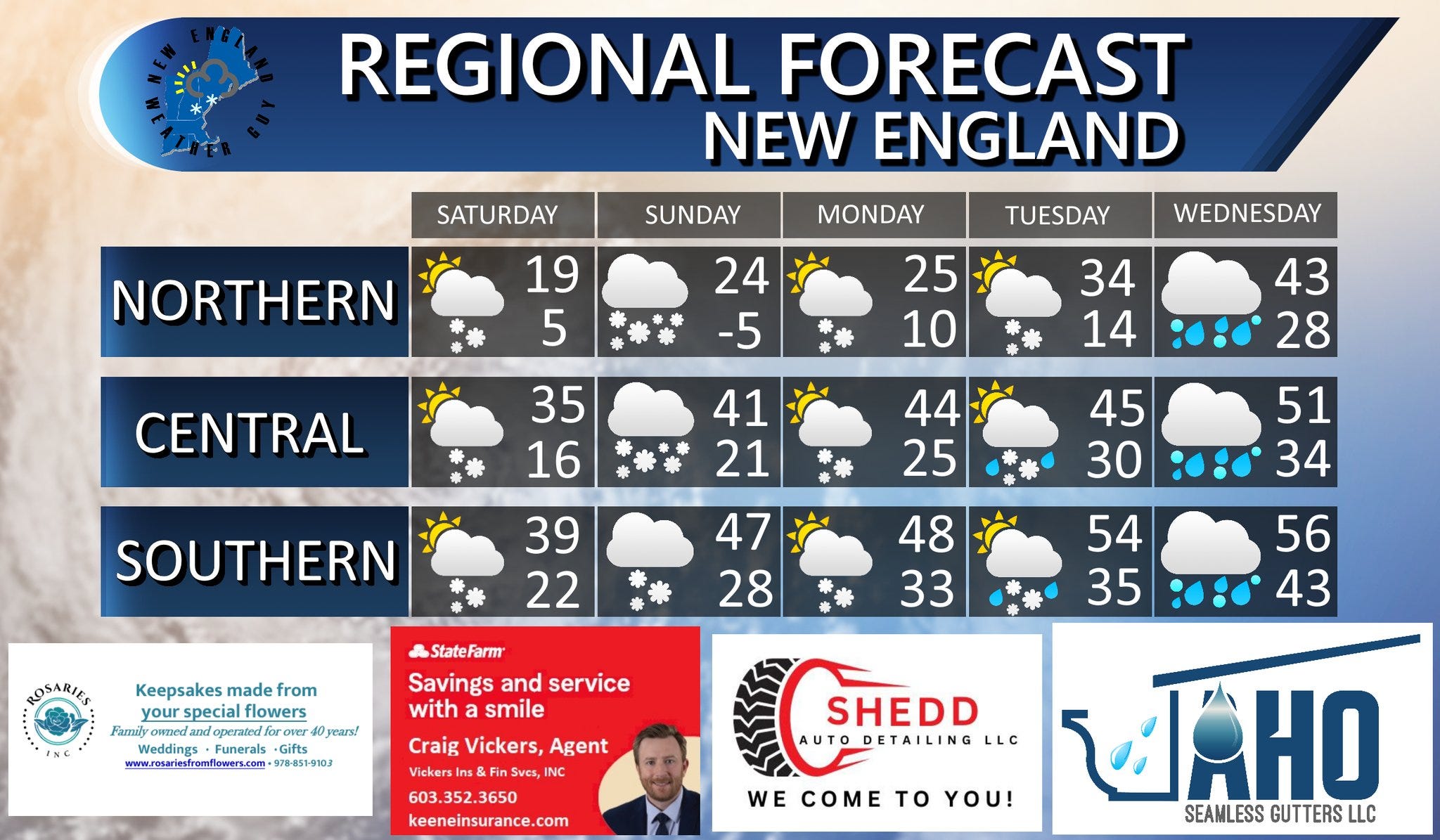 The best opportunity for accumulating snow is north and west of Concord, NH, including northwestern Mass like North Adams and the Mt. Greylock area. South of Boston and Worcester are likely to see a coating at least including right on up into coastal Maine. No real rain from this system as it will be bringing lots of cold air with it.
