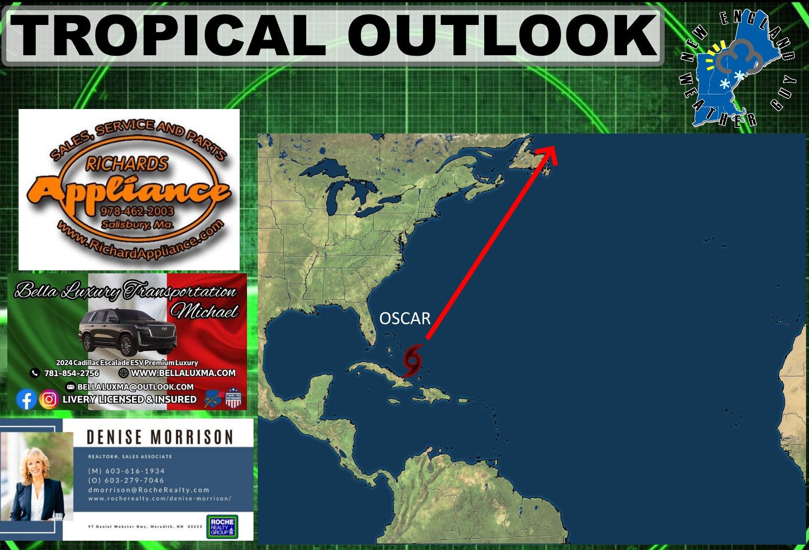 In the tropics, we do need to keep an eye on Oscar, or at least it's remnants. Since my last update, we went from looking at nothing more than a rainstorm to this storm holding together as at least a tropical storm and making landfall in Newfoundland as such. This would be around Friday of this week. This looks to thread the needle to the west of Bermuda staying over open water. Where the Atlantic is still above average temperature and looks to stay that way for the foreseeable future, this storm will have many opportunities to not necessarily strengthen but hold together just enough to bring a deluge of rain and some winds. We'll just have to keep an eye on it.
