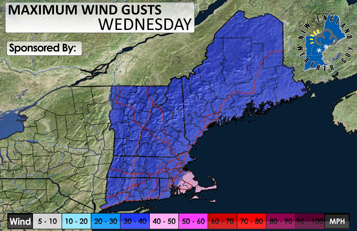 Wind is still likely to gust around 20mph on average with higher gusts likely for the coast and higher elevations. Some interior gusts could reach 30-40mph as we go throughout the day Wednesday. Scattered power outages are possible, but probably not widespread.